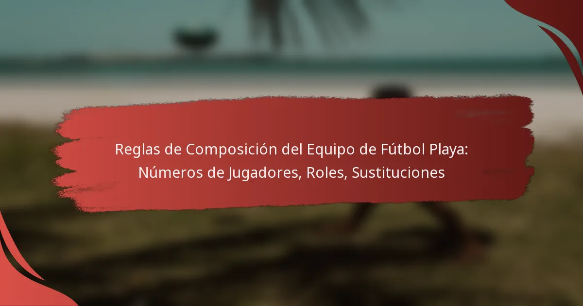 Los equipos de fútbol playa están regidos por reglas específicas en cuanto a la cantidad de jugadores, roles y sustituciones, que son esenciales para una gestión efectiva del equipo. Cada equipo cuenta típicamente con un conjunto diverso de roles que contribuyen a la estrategia general, mientras que las sustituciones ilimitadas permiten la rotación de jugadores para mejorar el rendimiento y gestionar la fatiga. Comprender estas regulaciones es crucial para optimizar la dinámica del equipo y la efectividad del juego.